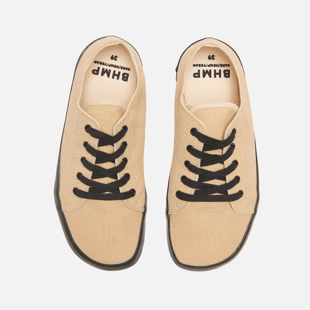 Barefoot šněrovací tenisky HOSKA v konopné verzi mají původ na sportovních kurtech. Tento model odpovídá standardům barefootové obuvi – mají dostatek místa pro prsty, mají pružnou a tenkou podrážku a jsou lehké.